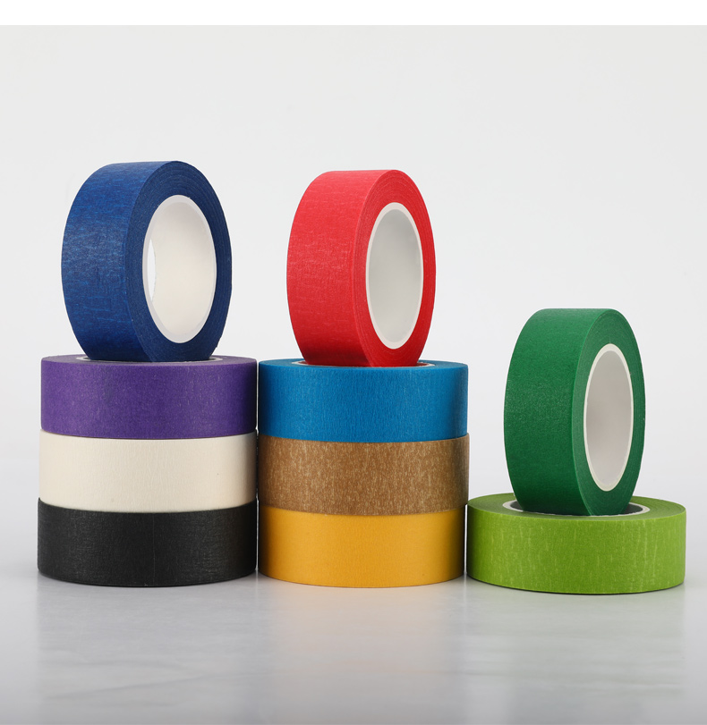 - 美紋紙膠帶 黃色美紋紙,紅色美紋紙,黑色美紋紙 藍(lán)色美紋紙,綠色美紋紙 ,白色美紋紙,桔紅色美紋紙 咖啡色 紫色 淺紅色美紋紙 是采用皺紋紙的基材的橡膠型的膠型所制 單面涂覆壓敏膠。