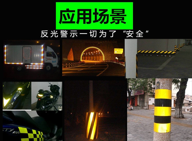- 本品常用于車間、酒店、辦公室、商場(chǎng)、停車場(chǎng)、工地、走廊、樓道 作為警示用品主要貼地板、立柱、玻璃、車身,因材料反光所以更能起到警示作用!