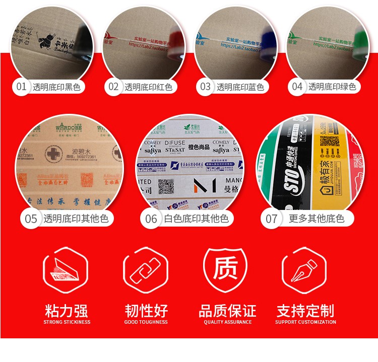 - 以聚丙烯膜( OPP )為基材,涂上壓敏膠制造而成。具有高抗力、粘度佳、質(zhì)輕、低成本等優(yōu)點。 適用于各種包裝封粘固定,特別是在紙箱的封粘上,并能配合自動 包裝機封箱,已成為包裝材料之主流。
